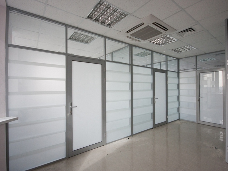 Для помещений, где не используется отопление, и нет нужды сберегать тепло, используют чаще всего именно этот профиль. Если вы придёте в торговый комплекс, офис, складское помещение, скорее всего, увидите перегородки, сделанные из алюминия. В сборке используют Проведал 40 мм, Проведал 60 мм, КП 50, для заполнения же обычное или тройное (триплексное) стекло, а также однокамерные пакеты толщиной до 24 мм.