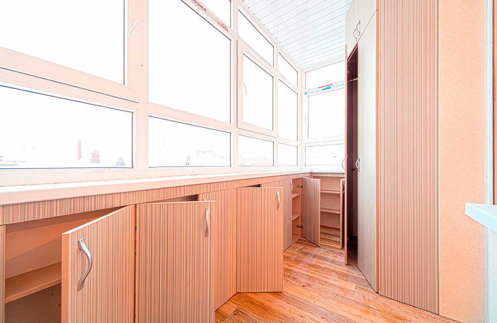 Компания «Викор» предлагает оценить преимущества комплексного подхода к обустройству балкона или лоджии и помимо остекления и отделочных работ оказывает услуги по изготовлению встроенной мебели.