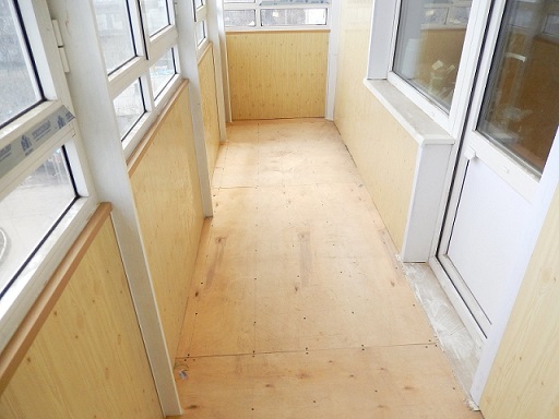 Если остекление холодное (алюминиевое), то сухая строганная доска не потребует дополнительных вложений. Если же вы захотите сэкономить за счёт использования ДСП, то придётся также потратиться на линолеум или ламинат поверх, чтобы защитить материал. Под низ стелят лаги.
