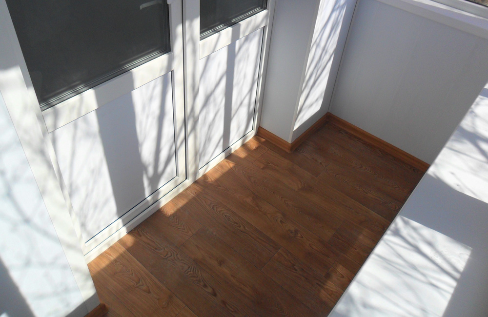 Третий вариант ещё дороже, так как здесь используют ту же механику, но с применением материалов более высокого качества (половая доска, либо фанера и ламинат более высокого класса). Они сами по себе стоят больше, но выдерживают температурные перепады и имеют широкую цветовую палитру для того, чтобы гармонично можно было сочетать балкон с общем стилем квартиры.