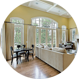 Для коттеджей и исторических домов мы предлагаем окна нестандартных форм: арки, круги, трапеции, треугольники. Нанесение ламинирующей плёнки на профили сделает окно оригинальным и позволит вписать его в интерьер. Комплексная защита вашего дома: усиленная фурнитура, ручка с замком и ударопрочный стеклопакет.