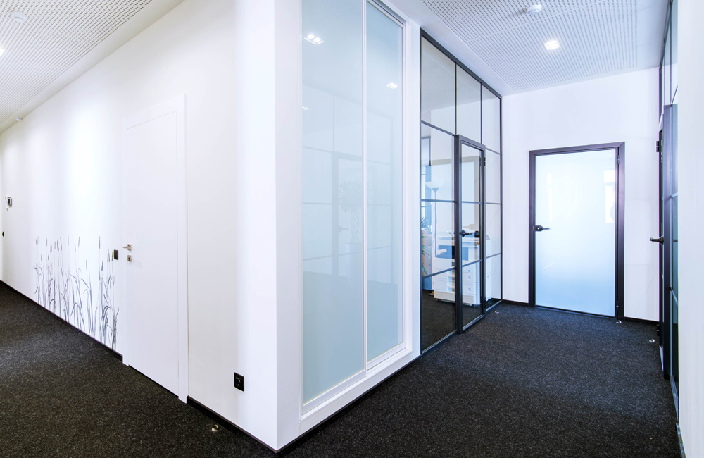 Дизайн офисных пластиковых дверей может быть любым. Они могут быть полностью глухими или прозрачными, с остеклением только на половину, с декоративными раскладками или импостом. Остекление может быть с обычным прозрачным, матовым, тонированным или витражным стеклом. Наши производственные линии позволяют выпускать белые пластиковые двери и модели из ламинированного профиля.
